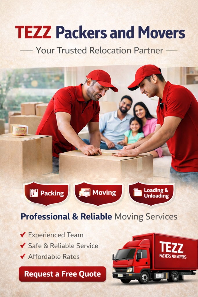 At Tezz Packers and Movers, we are committed to delivering reliable and efficient relocation services tailored to your needs. Our experienced team of professionals ensures that every move—whether residential or commercial—is managed with precision, care, and attention to detail.From high-quality packing and secure transportation to timely delivery and proper setup, we focus on making your relocation smooth and hassle-free. Customer satisfaction is our top priority, and we strive to exceed expectations at every stage of the moving process.With a strong track record of successful relocations and a dedication to excellence, Tezz stands as your trusted partner for a safe, seamless, and stress-free moving experience.
